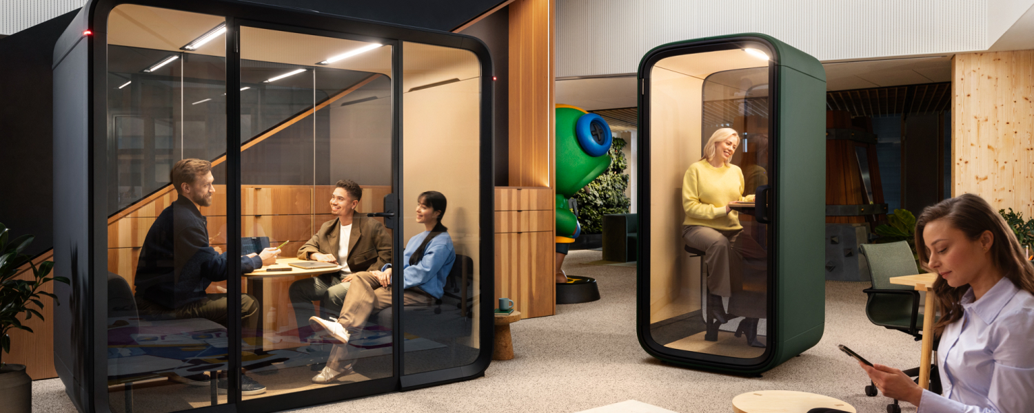 znanych marek, m.in. wykładziny Bolon, meble biurowe Haworth, Vitra, Actiu i wiele innych. W biurach (i nie tylko) stosujemy rozwiązania takie jak budki telefoniczne i kabiny akustyczne Framery.
