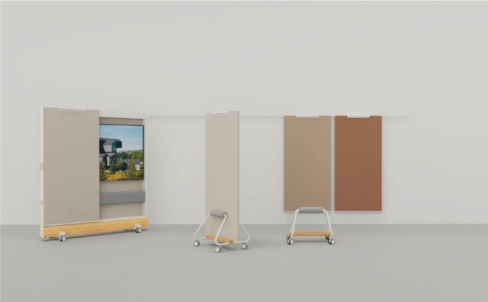 The basic function of Dancing Wall 2, designed by Stephan Hürlemann, is that of a mobile partition, dividing offices into zones while providing usable vertical surfaces and power connections. It consists of a metal frame that can be equipped in various configurations: as a room divider with removable whiteboards and pinboards or as a bookshelf, TV unit, coat rack or plant wall. The half-height Dancing Station can serve as a narrow high table but also as a sideboard in one or two file heights, as a recycling station or as a coffee bar.
