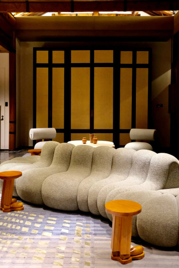 The Hippo Lounge Chair added a playful element, offering soft seating within the exclusive setting.