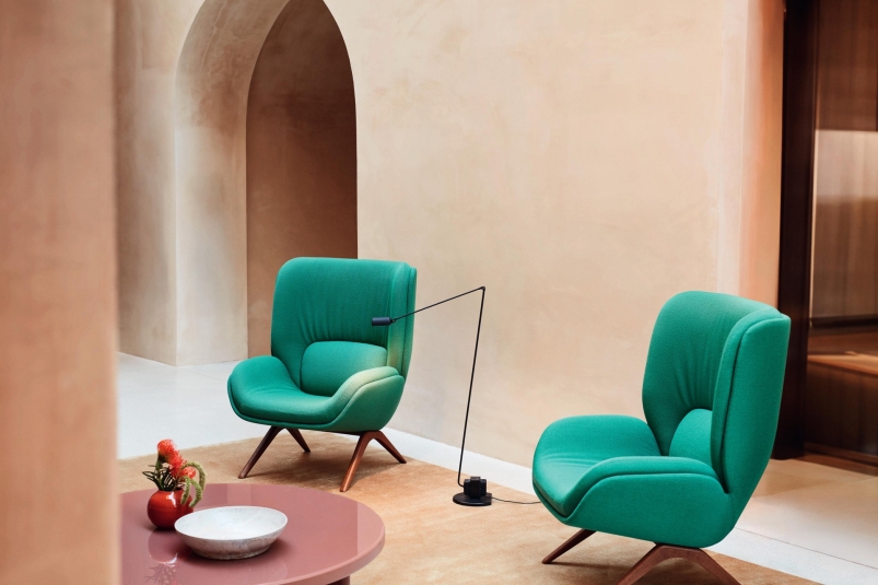 Shaped to create a natural sense of privacy, refined through subtle and elegant details, and conceived with a mindful approach to materials and longevity, Lepal by Arper reimagines rest as a quiet force of energy and inspiration. Designed by Doshi Levien.