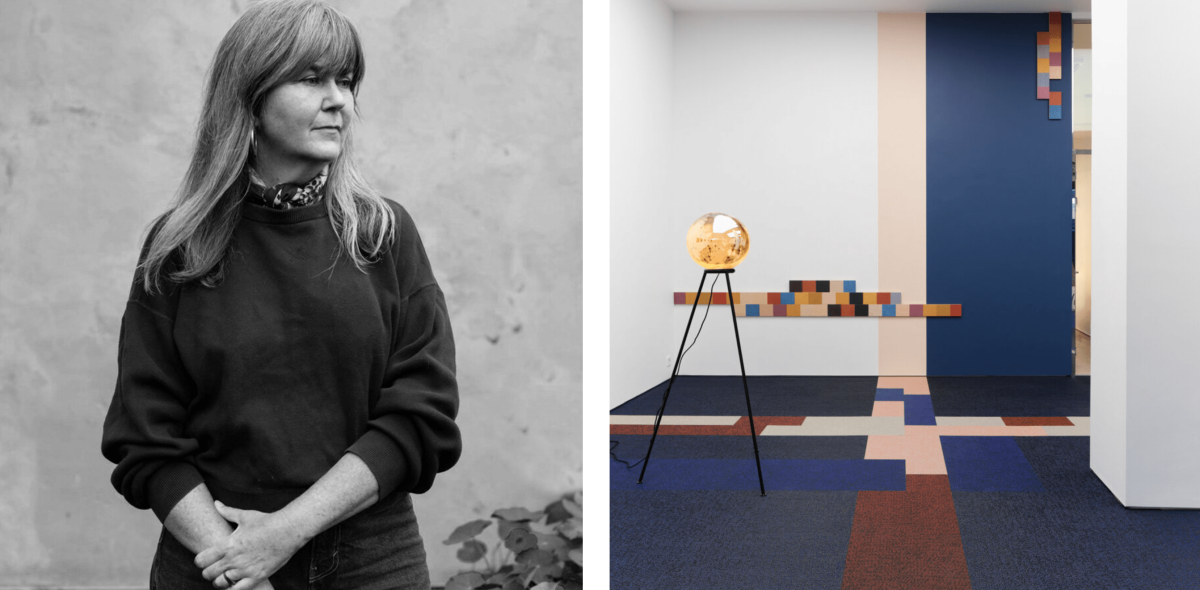 The floor-covering work made in collaboration with Bolon, using the Riff collection, was a way for me to ‘tie the room together’ and make the space harmonious and immersive. In the same way as Karin Larsson’s tapestry The Four Elements stands for something typically Swedish, I think Bolon flooring is interesting in the same way, shaping the look of what we think of as Folkhemmet, extending into the stunning flooring of today. The actual weft squares of the flooring further emphasise the weaving idea of the film and the soundtrack, and the 3D quality of the material marries well with my idea of bringing the animation of the film into the actual space of the exhibition.