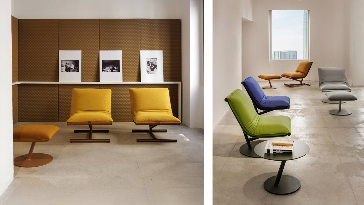 Forma pozostaje rozpoznawalna: lekka, graficzna, ikoniczna. Jednak obecnie jest pokryta współczesnymi materiałami, w tym wybranymi tkaninami Gabriel Fabrics, i naturalnie wpisuje się w dzisiejsze przestrzenie domowe i kontraktowe.