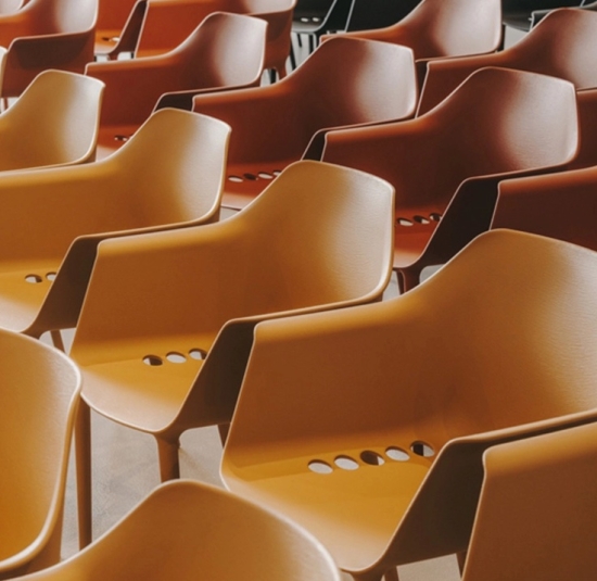 Skorupa krzesła Ronda jest produkowana z wykorzystaniem nowej gamy polimerów Pure ECO®.